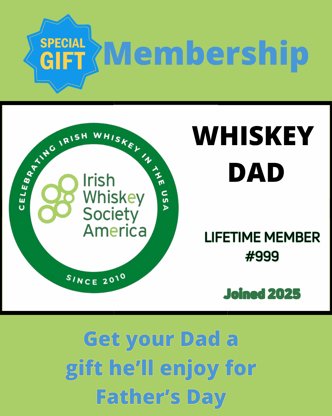 We have been Celebrating Irish Whiskey in the USA since 2010. By joining the IWSA, your gift gives the recipient lifetime membership in a club whose goal is to expand the appreciation and awareness of Irish whiskey through the responsible and congenial enjoyment of Ireland’s signature spirit. Your membership allows us to continue our efforts via this website, our social media outlets, forums, tastings, bottlings, casks, trips, etc.